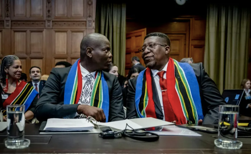 No armed attack, no matter how serious, could justify Israel's response, Justice Minister Ronald Lamola (left) told the court (Remko de Waal)