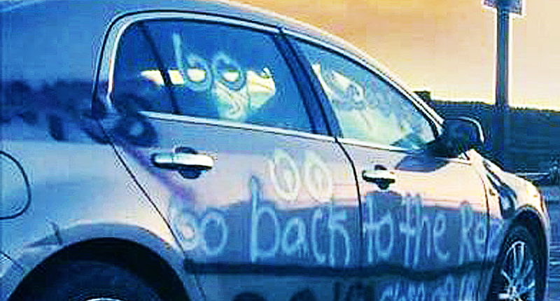 One particularly worrisome image spray-painted above the "go back to the Rez" message are the letters SS, which can refer to Schutzstaffel, Adolph Hitler's paramilitary force. Skinheads and neo-Nazi's often use such symbolism to express their views of white supremacy.