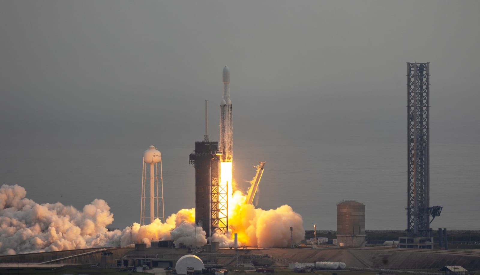KENNEDY SPACE CENTER, Fla. — The Space Coast witnessed a rare launch of the SpaceX Falcon Heavy rocket Friday on a mission for NASA that also featured the double sonic booms of its returning first-stage boosters. Flying for only the eighth time ever, and its ever launch for NASA, the Falcon Heavy, which is essentially three Falcon 9 boosters strapped together, avoided weather concerns for a 10:19 a.m. liftoff from Kennedy Space Center’s Launch Pad 39-A. The rocket blasted through the haze of heavy cloud cover popping in and out of view through slivers of blue sky on its way into space. Teams b...