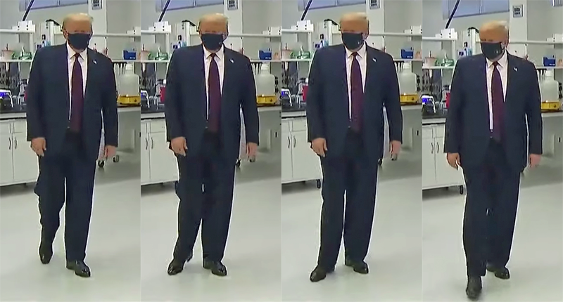 Composite image of Donald Trump appearing to drag his right leg while walking in North Carolina (screengrab)