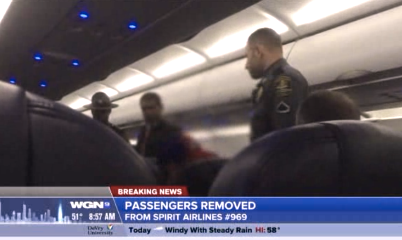 Image: Officers remove passengers from Spirit Airlines Flight 969 via screencap