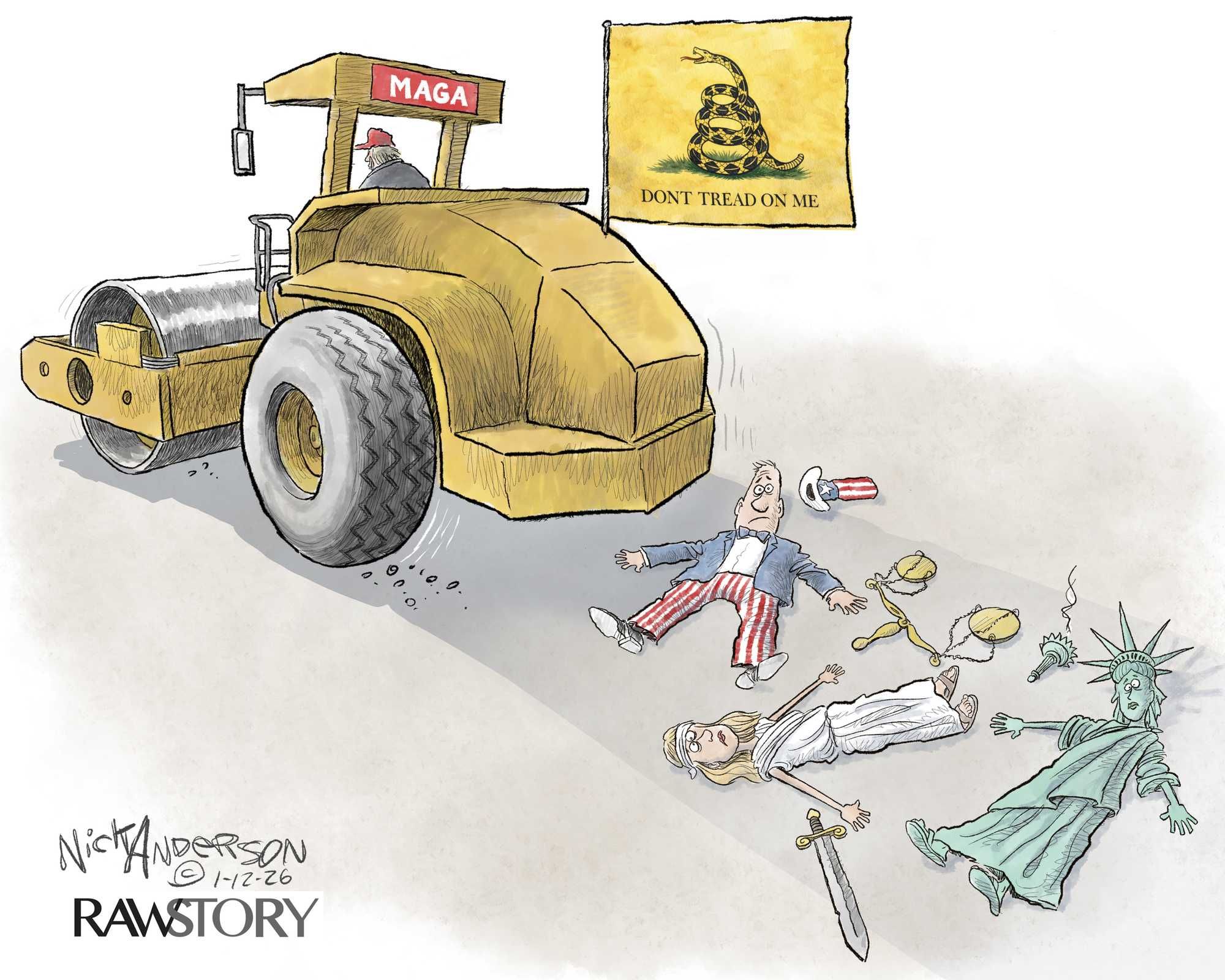 Steamrolling Trump treads all over AmericaNick Anderson/Raw Story Nick Anderson. Raw StoryJanuary 12, 2026