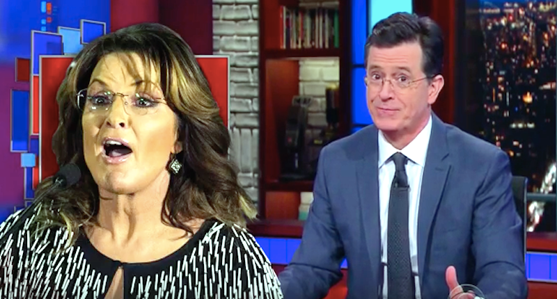 Stephen Colbert said there is no one on Earth like Donald Trump -- except for maybe one other person: Sarah Palin.