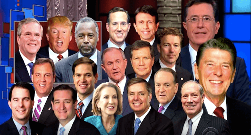 Stephen Colbert and the GOP field -- and former President Ronald Reagan (CBS)