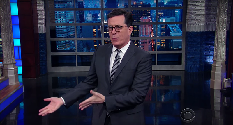 "I'm sorry, I thought I was signing an autograph, instead, I accidently gave back the Louisiana Purchase," Colbert said while doing a Trump impression.