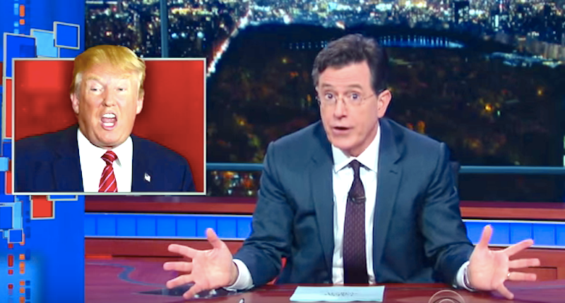 "Trump has already proven he's willing to offend every group in America except white people -- and frankly, as a white person, I feel left out," Colbert said. "It's his entire electoral strategy. Trump says something shocking, then all of us on TV spend days repeating it, giving him millions of dollars of free air time. So I would rather not give him more of it and simply say that I agree with this bipartisan message from Republican Sen. Lindsay Graham and Democratic Philadelphia Mayor Michael Nutter."