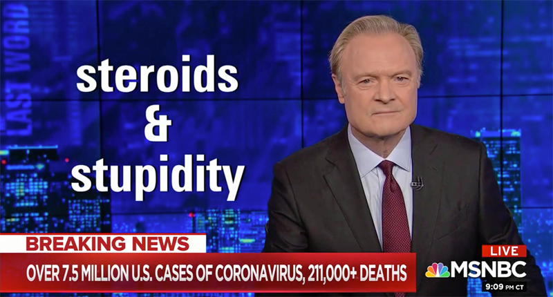 During the handoff between their shows, anchors Rachel Maddow and Lawrence O'Donnell discussed fears over Trump's mental health as he takes powerful steroids after contracting COVID-19.