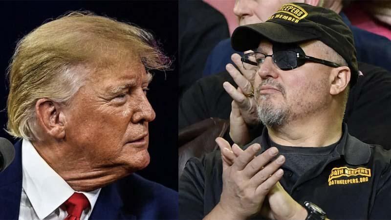 Donald Trump, Stewart Rhodes (Rhodes picture by Nicholas Kamm for AFP, Trump by Chandan Khanna for AFP)