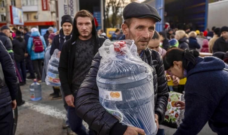 Residents receive supplies in the southern Ukrainian city of Kherson BULENT KILIC AFP