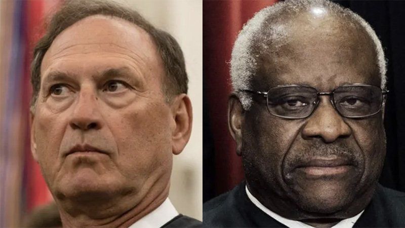 Justices Sam Alito and Clarence Thomas (photos by Nicholas Kamm and Saul Loeb for AFP)