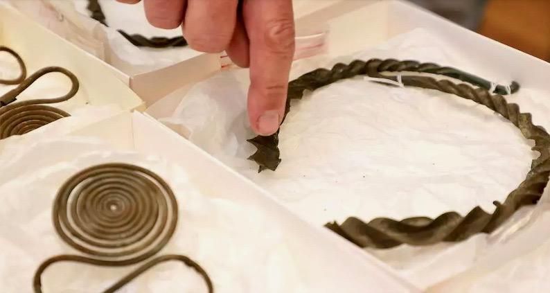 Among the relics, believed to be from the period between 750 and 500 BC, are some "very well preserved necklaces, chains and needles" made out of bronze.