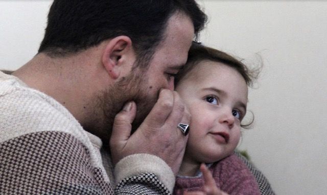 "Tell me Salwa, what did the plane do," the father asks his daughter.