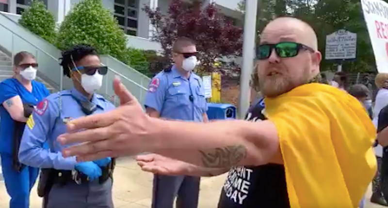 A lockdown protester in North Carolina singled out a black police officer for harassment.