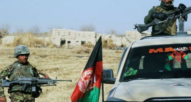 AFP/AFP - Afghan soldiers keep watch near the remains of the house belonging to Mullah Omar close to the mosque in Sangesar where he founded the Taliban movement in 1994