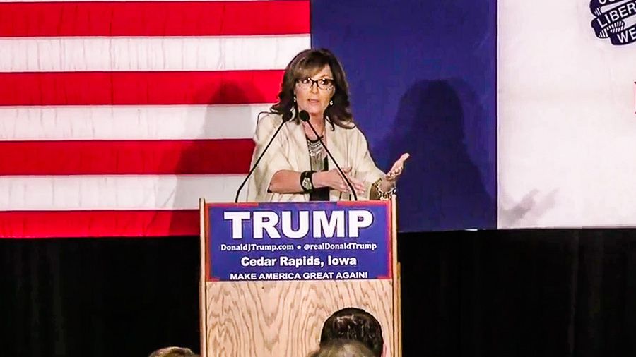 Sarah Palin speaks at an event for Donald Trump in Cedar Rapids (screen grab)