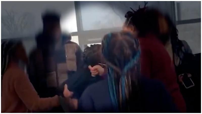 Jennifer Wells-Jackson was charged with risk of injury to a minor and second-degree breach of peace. The video shows her clasping on to the student's hair as other students tell her to let go. When she eventually does let go, she appears to push the student's head in the process.