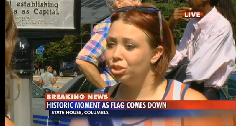 "To watch it come down -- even though I'm from North Carolina, I feel like I'm representing," a distraught Brandy Burgess told local WISTV. "It hurts to watch it come down knowing that people think this is a good thing in history, when to me it feels like we're going backwards."
