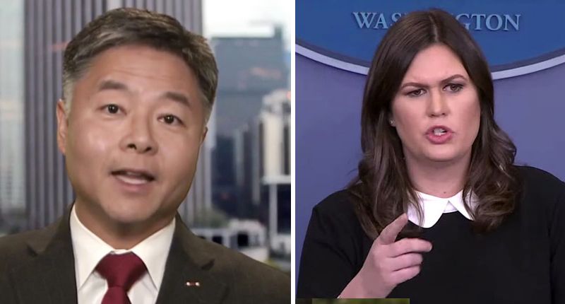 Ted Lieu (D-CA) and White House press secretary Sarah Huckabee Sanders (Photos: Screen capture)