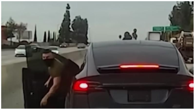 In that footage, the man follows a white sedan onto a freeway exit, gets out of his Tesla, and tries to strike with the pipe before the other vehicle speeds away. The driver of the white sedan reportedly said that she simply honked at the man, which apparently enraged him.