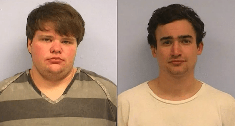 Tucker Sauer and Lucas Henderson: accused of throwing bottles shouting racial slurs (Austin PD Photo)