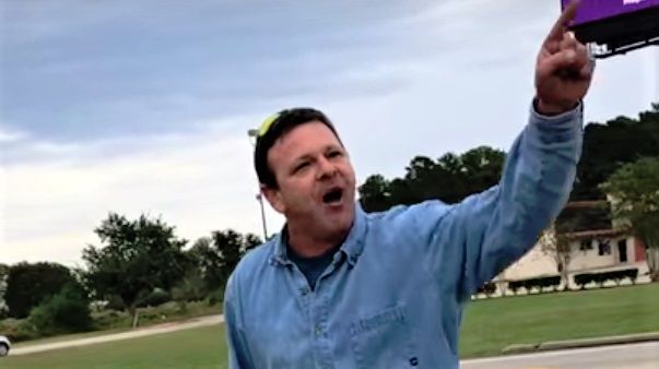A Texas conservative yells at people protesting Confederate monuments (Screen cap).