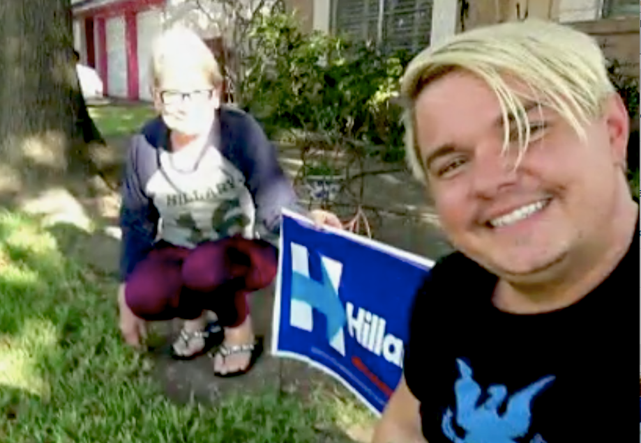 Dallas, TX residents Matt and Beth Steadman and their Clinton yard sign (Screen capture)
