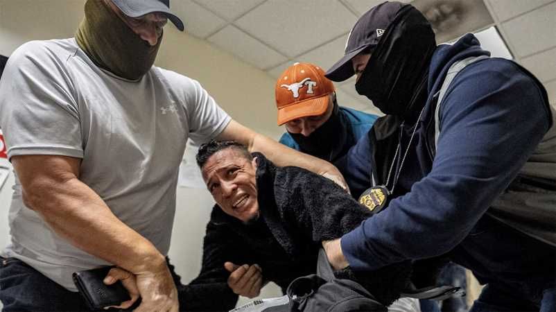 ICE agents taking unidentified man into custody (Photo by David "Dee" Delgado for Reuters)