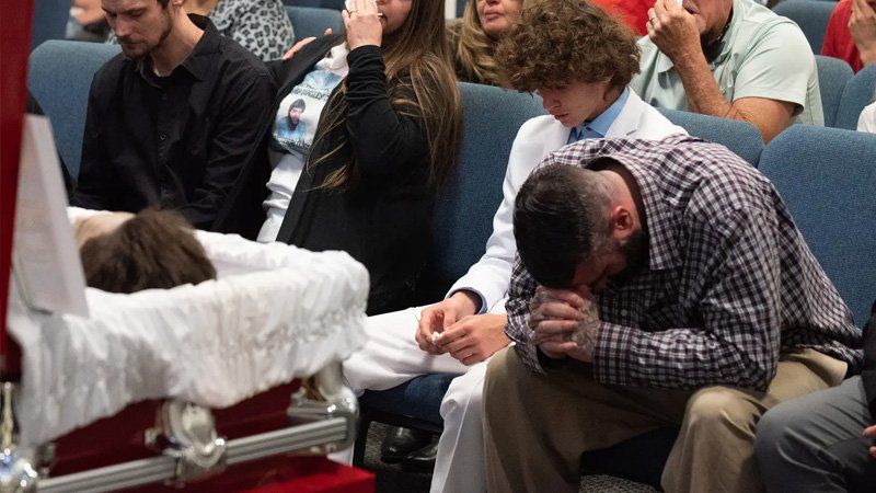 For most of the service, Joshua’s father, Joshua Beasley Sr., sat bent over in front of the casket, hands clasped, in a posture of abject anguish.