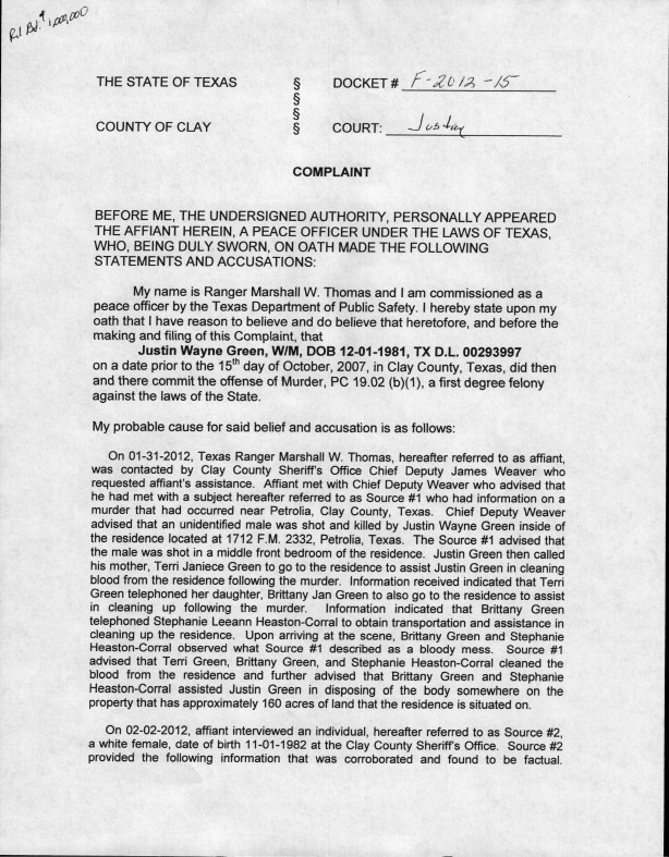 The police report claims that Green, his sister Brittany and her friend Stephanie Heaston-Corral allegedly worked together to hide the body and clean up the residency at the prompting of Green's mother, Terri.