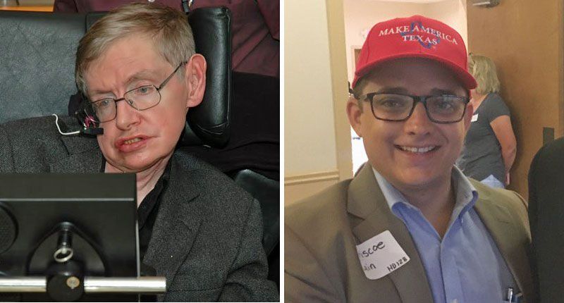 Prof. Stephen Hawking (Shutterstock) and Texas state Rep. Briscoe Cain (Twitter). Composite image.