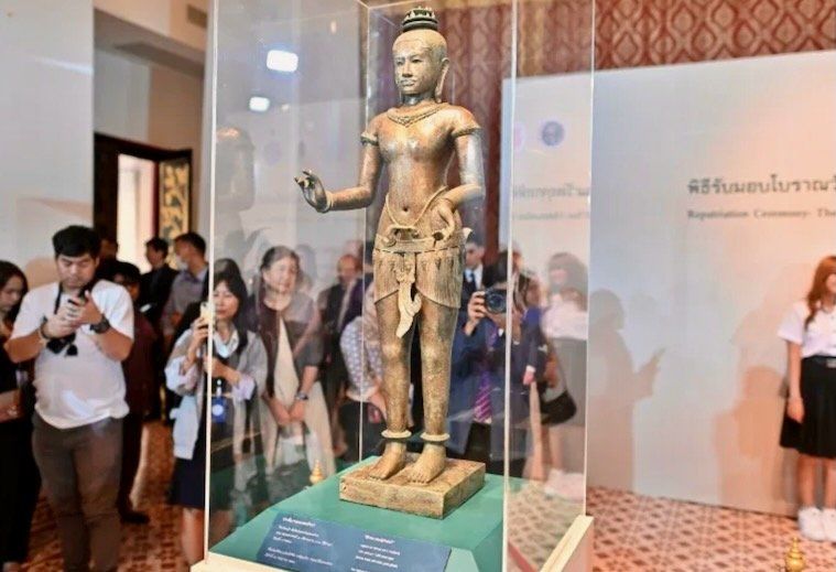 "We are honoured to get these artifacts back, they shall be located in their motherland permanently," the director-general of Thailand's Fine Arts Department Phnombootra Chandrachoti said at the repatriation ceremony at the National Museum in Bangkok.