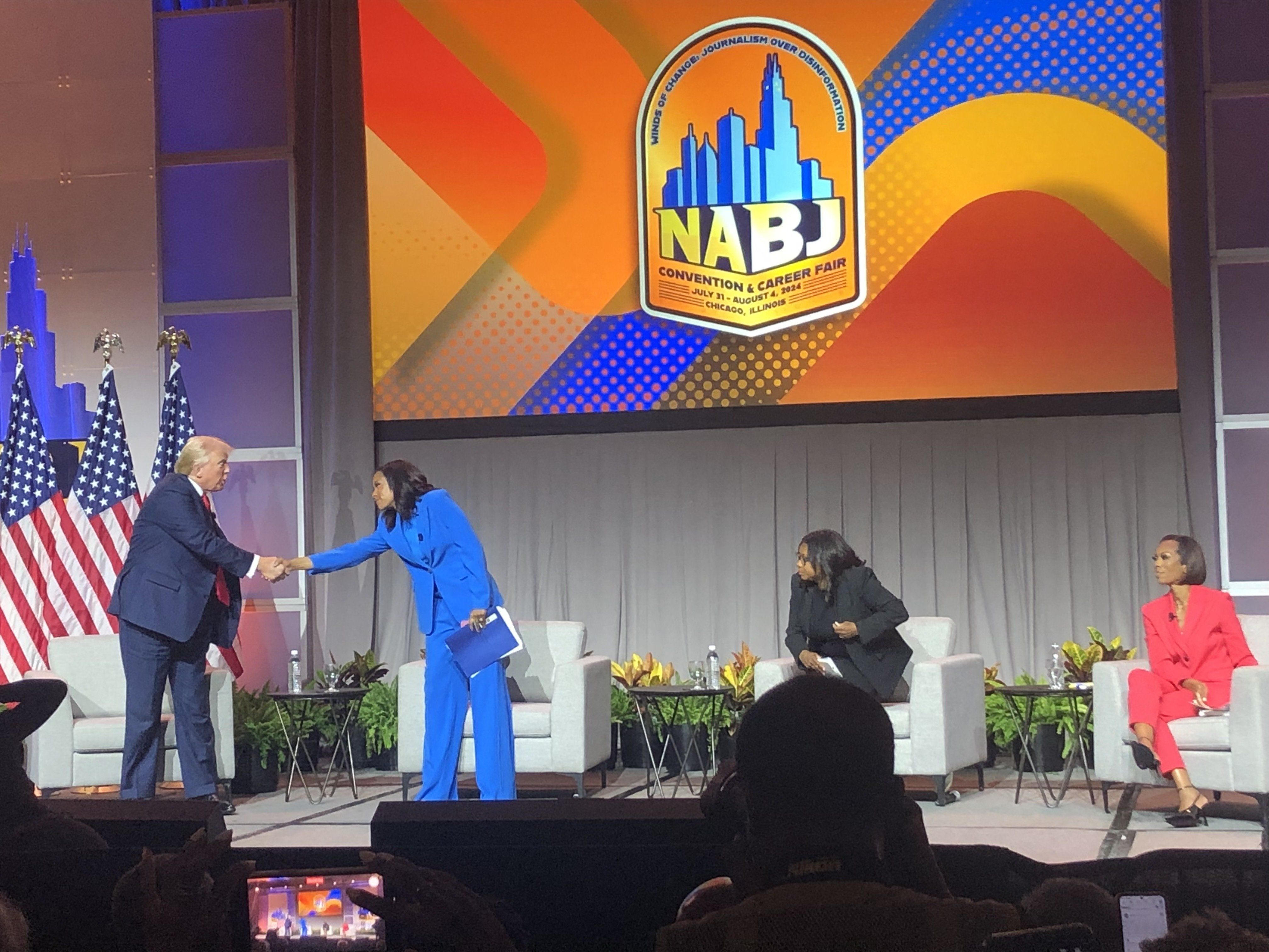 CHICAGO — Right before former President Donald Trump was about to be introduced for a question-and-answer session at the National Association of Black Journalists convention Wednesday, the crowd erupted into cheers over the announcement that the conversation would be fact-checked in real-time.