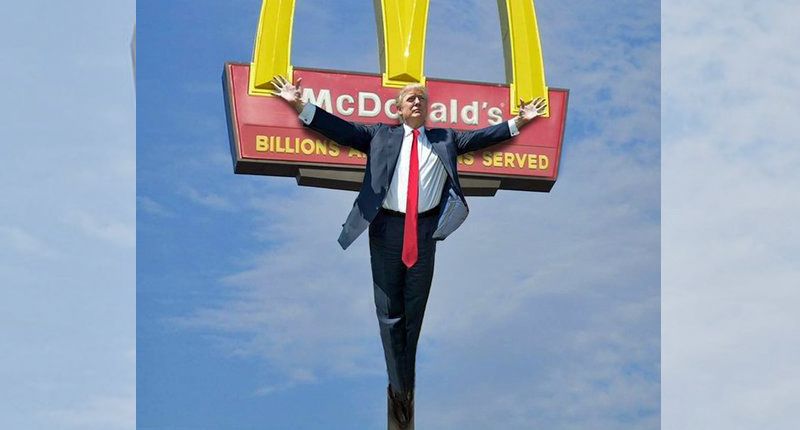 Artist’s rendition of Donald Trump being crucified on a McDonald’s sign (Twitter)