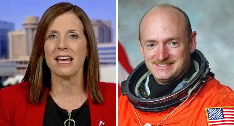 Interim-Sen. Martha McSally (screengrab) and former astronaut Mark Kelly (official portrait).