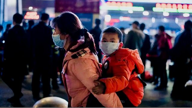 Coronavirus Passengers wear facemasks as they arrive at the Wuhan Wuchang Railway Station in Wuhan, early on April 8, 2020. © Noel Celis, AFP