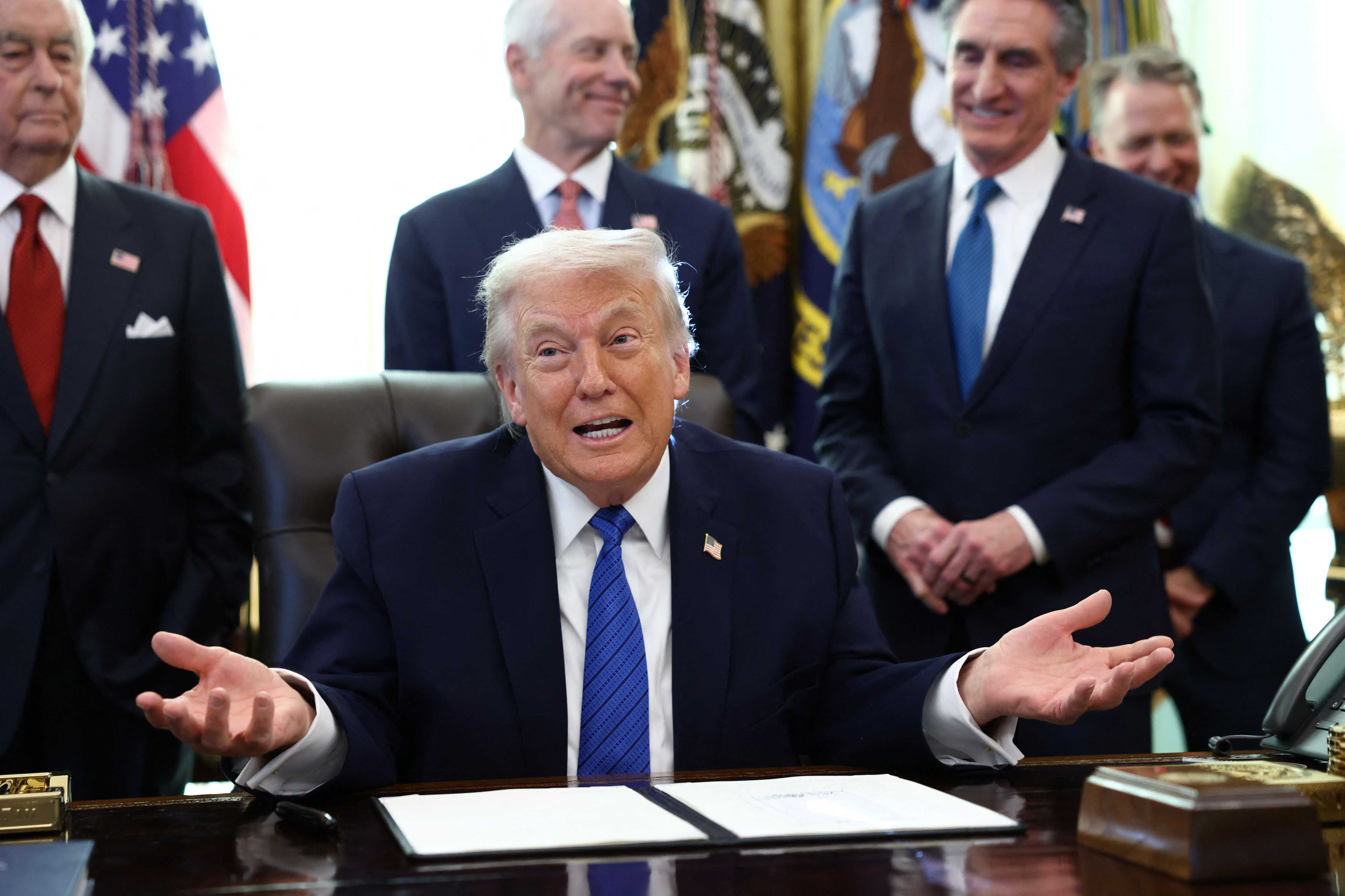 U.S. President Donald Trump gestures as he speaks in the Oval Office, at the White House in Washington, D.C., U.S., January 30, 2026. REUTERS/Kevin Lamarque