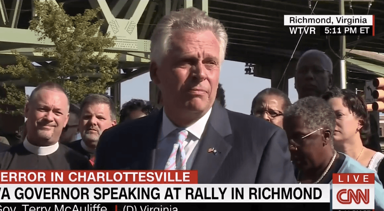 Gov. Terry McAuliffe, D-VA, speaks at Sunday prayer vigil for Charlottesville dead (Screen capture)
