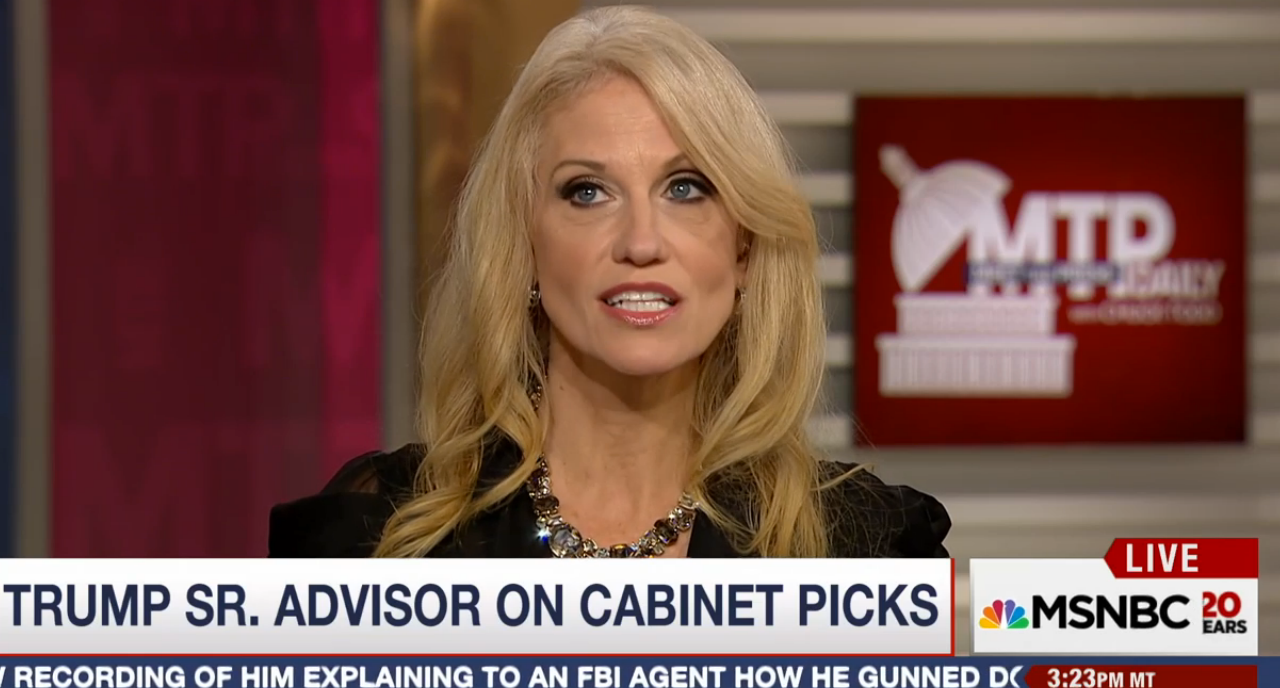 Former Donald Trump campaign manager Kellyanne Conway spoke with MSNBC’s Chuck Todd Friday, defending the president-elect over his cabinet positions, noting Trump “railed against” Wall Street influence doing the campaign.
