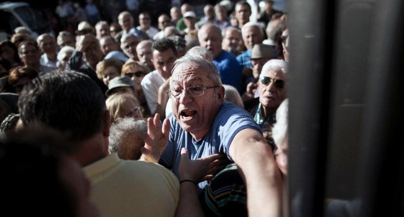 Thousands of angry elderly Greek pensioners besiege banks to grab cash