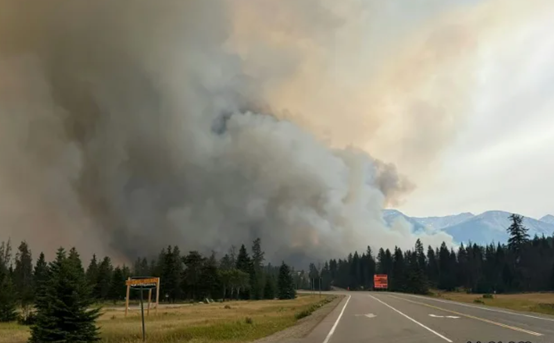 Smoke rises from a wildfire burning in Canada's Jasper National Park in July 2024, in a photo released by the park (Handout)