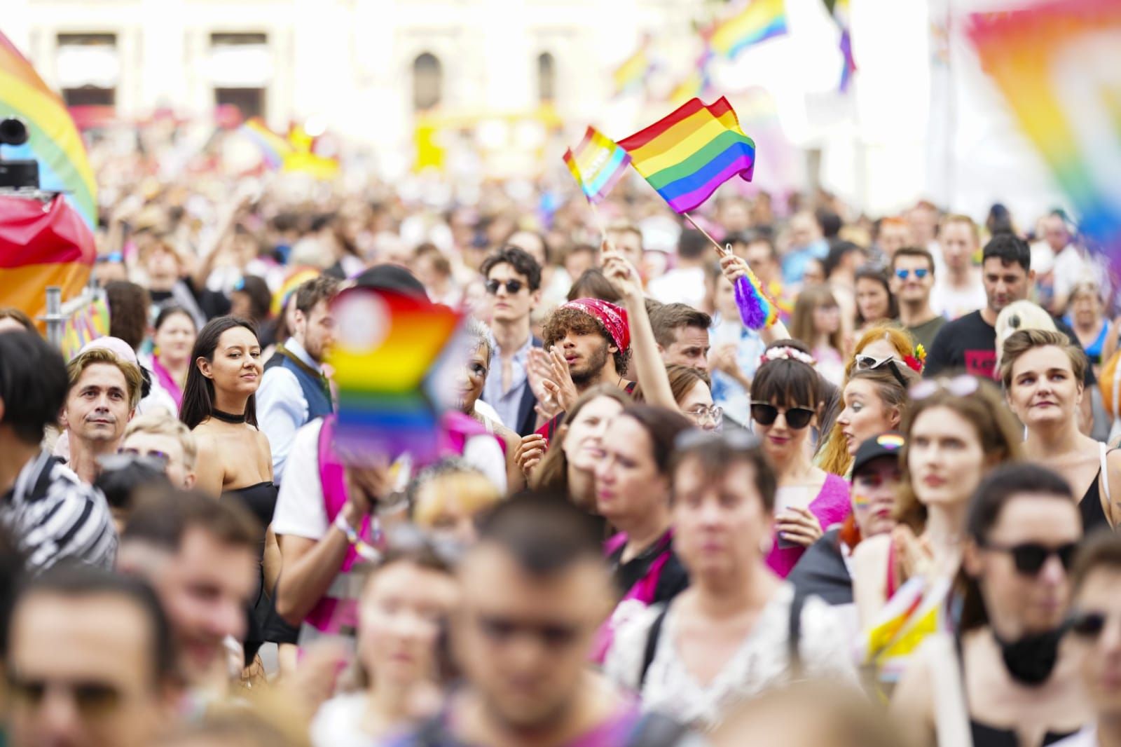 People take part in the opening of the 27th "Rainbow Parade" at City Hall Square. Eva Manhart/APA/dpa
