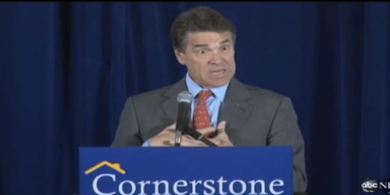 Ah, Ricky Perry. It's so nice to have him in the race! Perry is probably the most entertaining of all the terrible people fighting for the nomination, though it's hard to keep track because there are so many and odds are another person will have signed up by the time I've published this post.