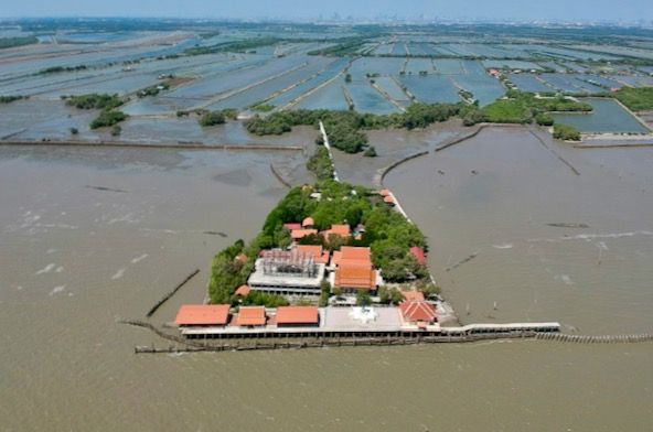 Climate change is also having an impact: stronger waves and more ferocious monsoons have wiped out mangroves in the Gulf of Thailand, which is especially vulnerable because its waters are so shallow.