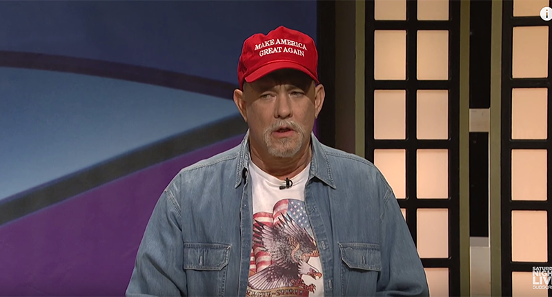 After a brilliant performance as Chris Wallace during the mock debate on this week's "Saturday Night Live," actor Tom Hanks went full deplorable. He donned a red "Make America Great Again" hat and sported an over-grown, graying goatee to hilariously channel a "typical" Trump supporter as a guest on "Black Jeopardy."