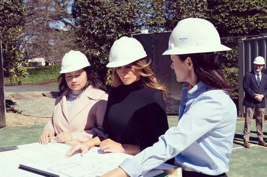First Lady Melania Trump on Thursday tweeted out a photograph of her wearing a hardhat while supposedly overseeing renovations to the White House tennis pavilion.
