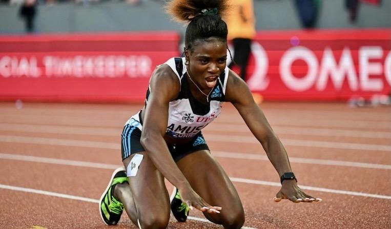 Nigeria's Tobi Amusan celebrates after victory in the women's 100m hurdles final in Zurich on September 8, 2022 Fabrice COFFRINI AFP/File