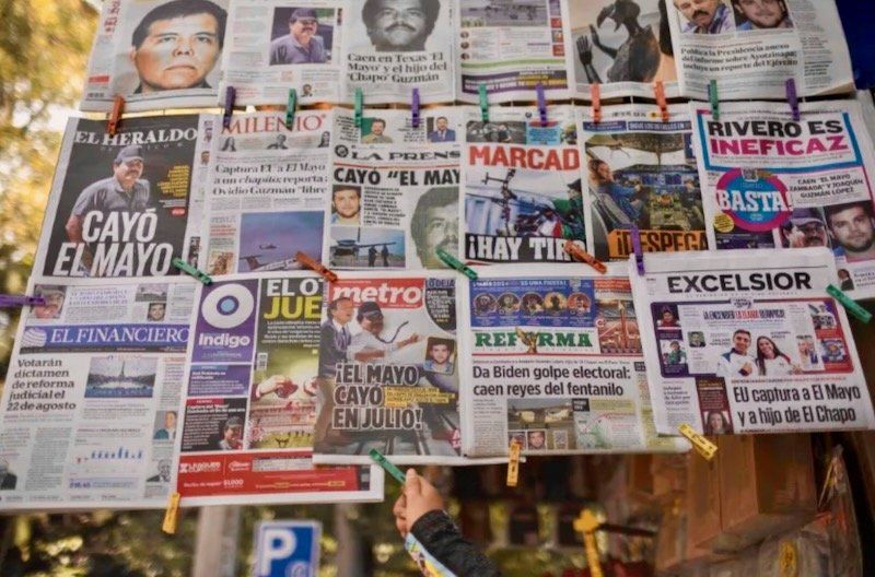 Mexican newspapers announcing the news of Ismael "El Mayo" Zambada's capture (Rodrigo Oropeza/AFP)