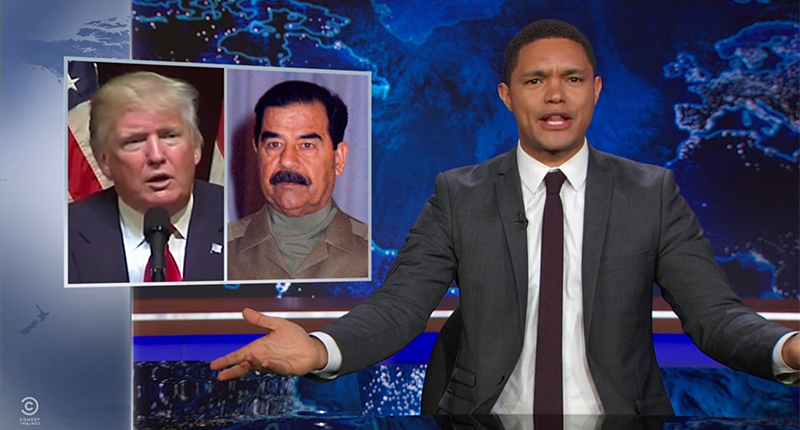Trevor Noah on Trump's insane Saddam Hussein comments. (Photo: Screen capture)