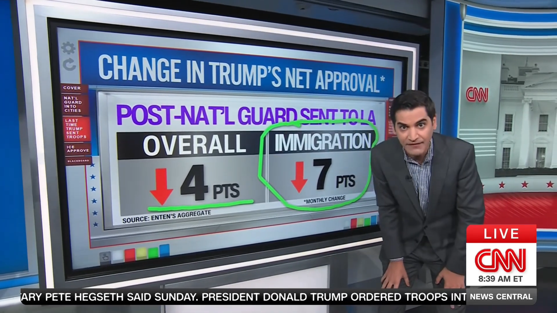 “Well, look at the change in Trump's net approval: overall, it dropped four points! How about immigration? It dropped by seven points! We have a history of Trump sending the National Guard into a western city and what happened was there were clear political ramifications for the president of the United States, and they were not good ramifications.”