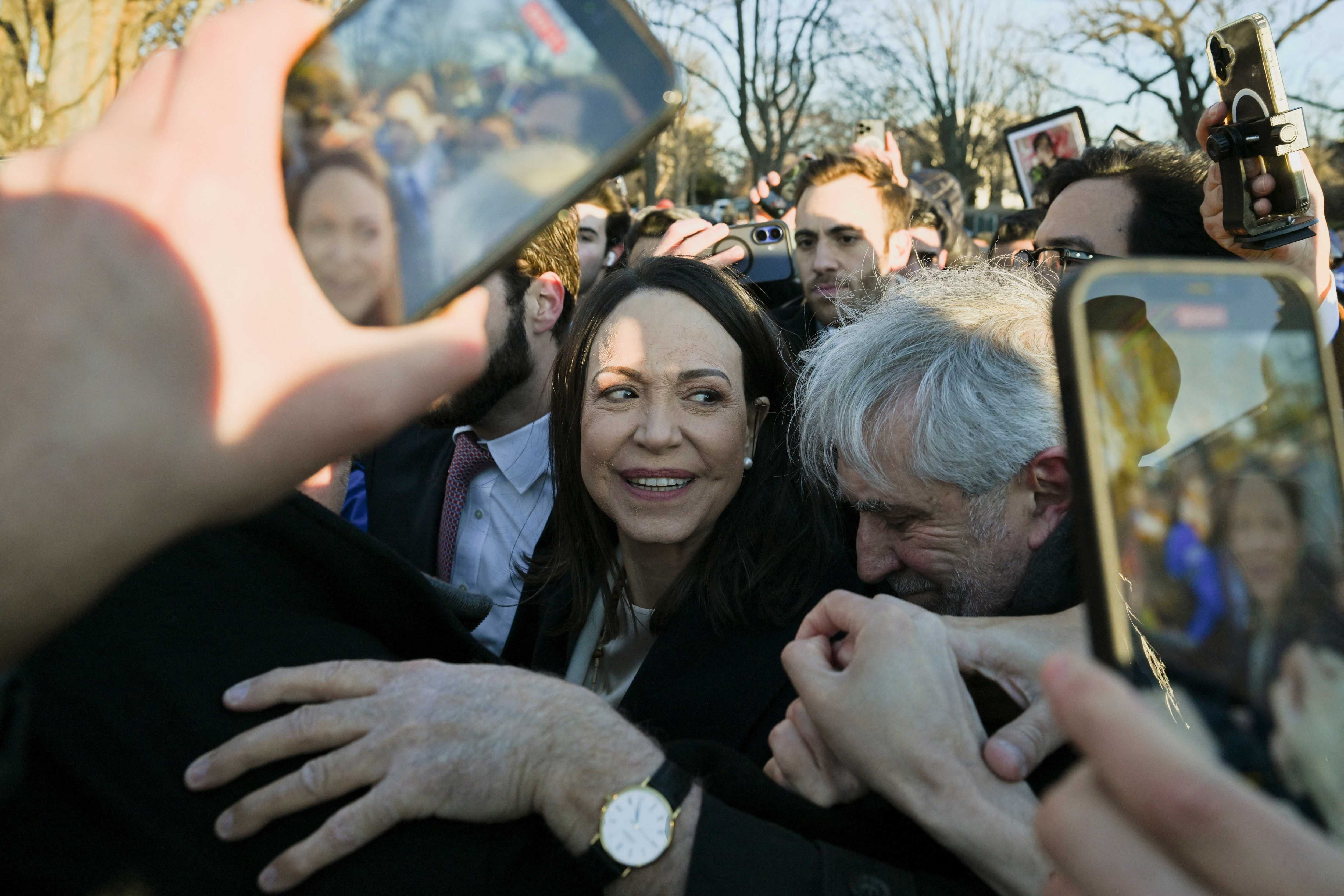 Machado traveled to Washington, D.C., to meet with President Donald Trump amid the U.S.'s ongoing intervention in Venezuela. Earlier this month, the U.S. captured dictator Nicolás Maduro and his wife, Cilia Flores, and flew them to New York to stand trial for narco-terrorism and weapons charges. The U.S. also left Maduro's second-in-command, Delcy Rodríguez, in control of the country instead of supporting Machado's opposition party, even though the latter won Venezuela's most recent election.